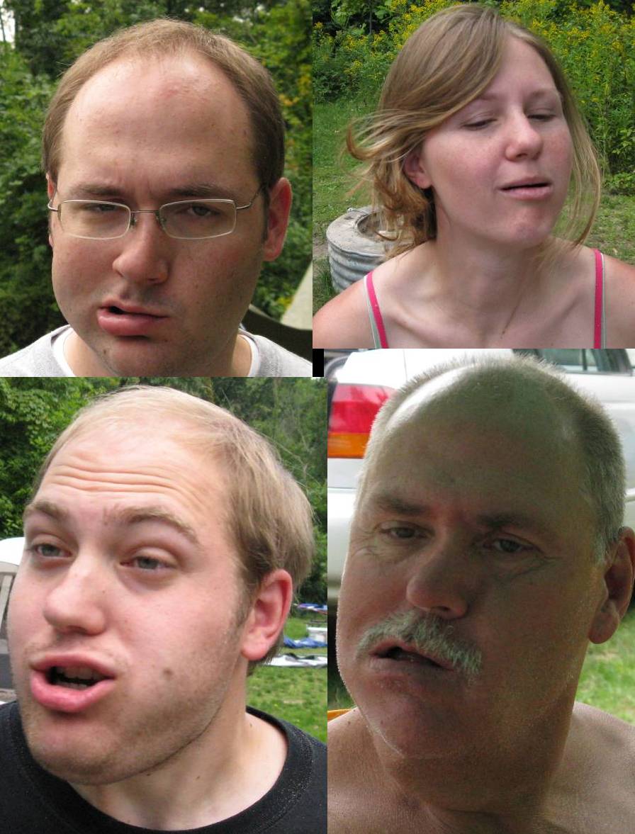 Finally, what would a camping trip be without some jowling? Jowling is when you shake your head back and forth with your lower jaw sort of hanging loose, and then have somebody snap a picture. This leaves your face in all sorts of weird positions, like you have a crooked face, or a palsy of some sort, or got punched by an invisible prize fighter. For example…