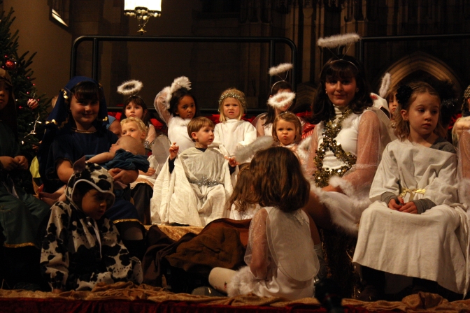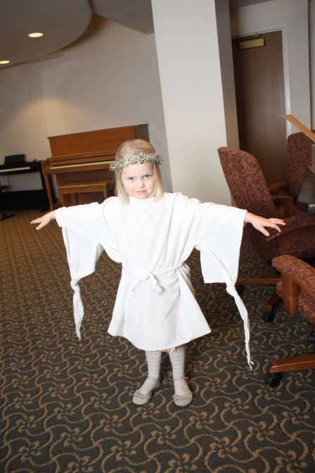 Last year, Evie participated in a (semi) amateur Christmas play at the family Christmas party. This year she was very excited to be in a “real” Christmas play. She was hoping to be an angel, and she got her wish!