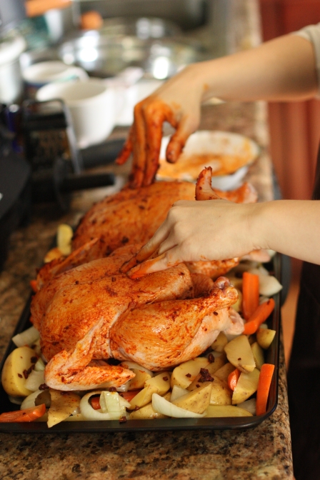 Honestly, I’m not really a fan of whole babies chickens, but the carrots and potatoes are TO. DIE. FOR. And of all the whole chicken recipes I have ever had, this one is the best.