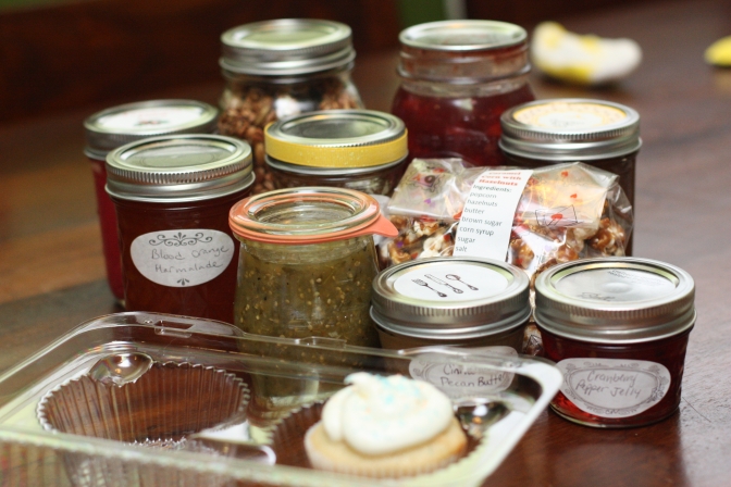 There were a lot of baked goods this time, which isn’t bad, but it’s not really what we’re in the market for. We make lots of baked goods at home, so they’re just not as exciting. Canned jams, however, seems to be what we are in the market for. Right now we have something like 8 different open jars of spreads in the fridge, with a dozen or so more in the pantry. And they are all wonderful.
