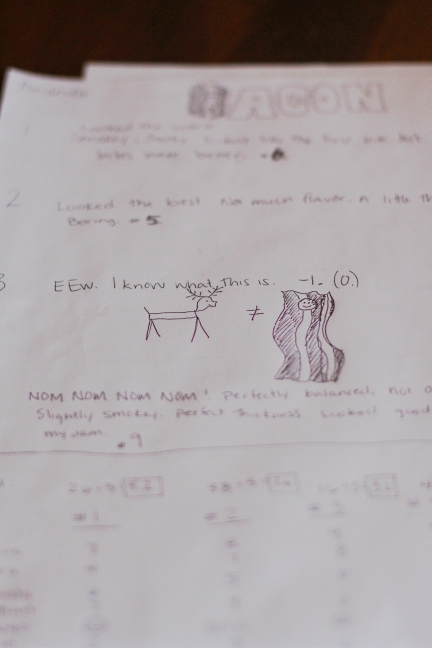 Ollie gave everything a smiley face. His only comment was on bacon #2: “Can we make this greasier?”