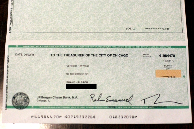 My co-worker said you could submit your receipts to the city of Chicago and they would reimburse you, since technically it is their fault for not maintaining the roads. That seemed a bit crazy, but hey, why not?