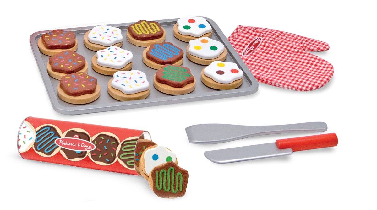 We were keeping track of how many steps he took in a row, but he’s pretty much just straight up walking now. He can also climb up the stairs, which makes it tricky for trying to watch him downstairs. His favorite toys are anything he can carry around the house while walking, but seriously, his all-time favorite toy right now is just the little cookies from the Melissa & Doug set play-kitchen set.