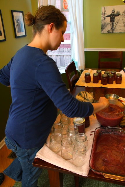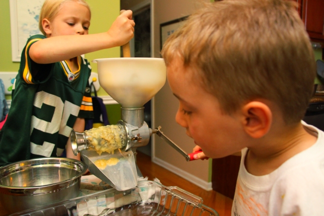 I was saying to Sara that, when our kids are graduating from high school, the one consistent set of pictures we will have to display is the kids cranking the strainer every year.