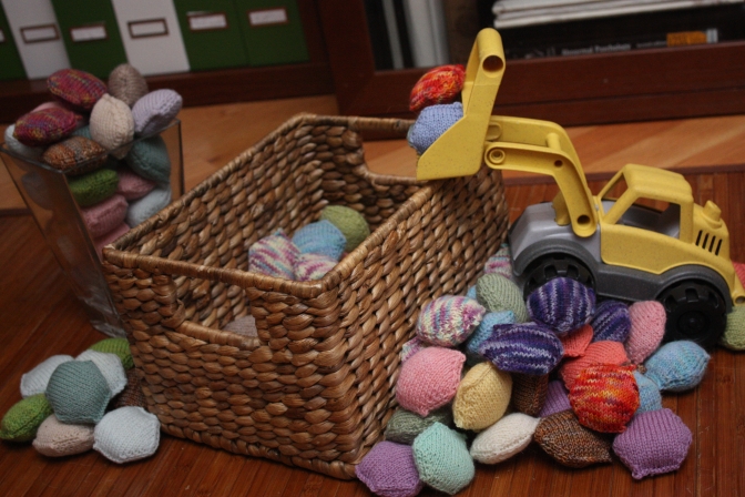 - Knitting with fuzzy wool, rather than cotton (it’s so hard to see what’s going on!)