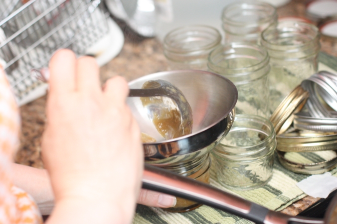 Any pot will do for the canning, but it must be able to cover the jars with at least 1 inch of water. The bigger the pot, the more volume you can process at a time. Processing the jars can be the longest part, so processing more at a time can greatly reduce your overall time. Our standard canner can fit 7 quarts, and comes with a wire rack for holding and lowering the jars into the water. For items that don’t need such big jars, such as jams in half-pint jars, we just use a regular, large pot.