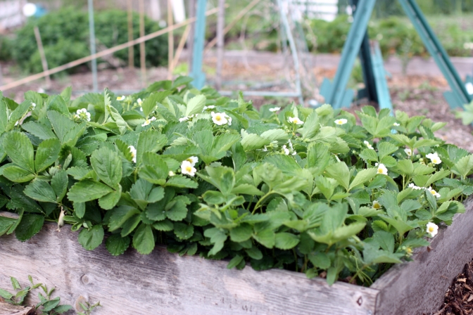 It looks like one of the tomatoes didn’t survive the planting, and one of the ones from the food swap is a teeny tiny baby, so I’m not sure it’s going to make it either. But it’s still early enough that we could probably sneak in a few replacements if we had to.