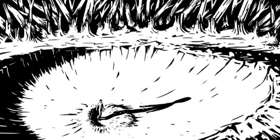 He stood and carefully picked his way out of the crater. The sloping earth was warm and pleasant against his bare feet, and forest sounds gradually returned as he climbed. When he was out, the man stopped and looked around the small clearing. Whatever had occurred had damaged many of the trees, their broken branches aromatic with pinesap.