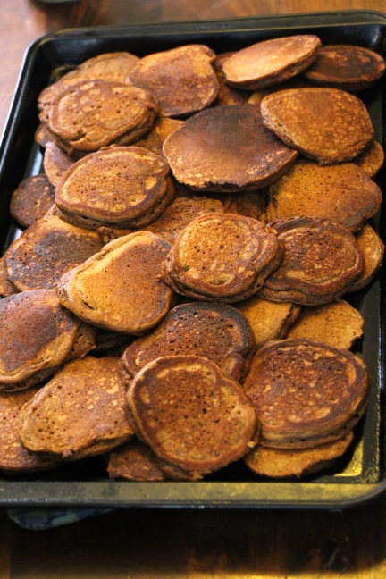 I don’t think you really need a mixer to make pancakes. It is debateable whether it’s worth it at all, since I need to dirty a spoon for dropping them on the pan anyway. On the other hand, this stand mixer just sits there on the counter taking up space and demanding to be used to justify its existence, so why not?