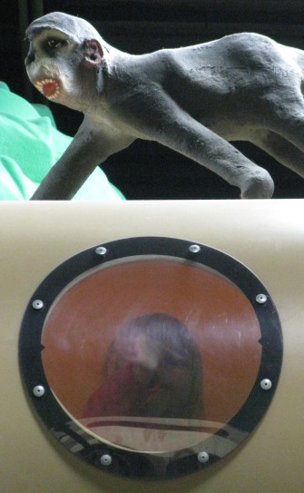 The way home was roughly the same as the way out. It was raining in the morning, but it finally cleared up in the afternoon, so we took a side trip to South Bend to hit up a park. This little side trip ended up being pretty interesting. First off, I got to passively pump gas and watch the police try to rouse a homeless guy who was…well, let’s just say he was never going to be roused by a policeman again. Afterwards, we took a delicious detour to the South Bend Chocolate Company. The food was awesome, but the place was bizarrely empty. It worked out well for us, however, since the place had a big indoor playground and we were the only ones using it. The structure was pretty awesome, except for the stuffed demon monkey statue thing perched on top of one of the tubes. The thing freaked Evie out so much that she wouldn’t go inside without me. I can’t say I blame her. Who puts a stuffed demon monkey statue, complete with sharp teeth in it’s screaming mouth, on top of a kid’s playground? Brilliant design decision.
