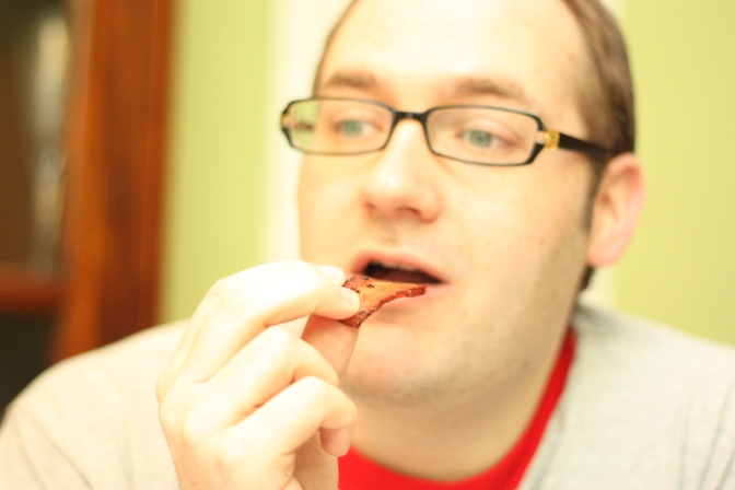 | ThinkGeek Tactical Bacon | 4 | I confess to recognizing this one. Honestly, it tastes like nothing, which is better than I expected. The texture is fine |
